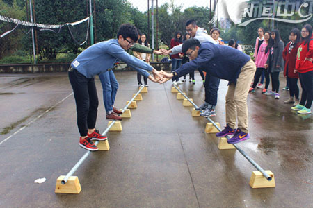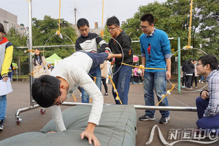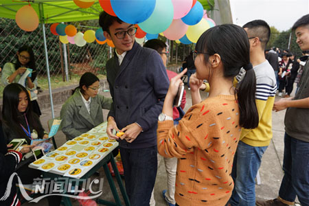 (校新闻中心学生记者团 林乾浩 实习记者 谭正廷 姚晓菲)走出寝室,体验活动乐趣。11月14日,杏园篮排球场人头攒动、热闹非凡,校第三届心理游园会现场组织的27个游戏项目人气爆棚。 吴冰倩 彭桢 摄 “瞪眼、鼓腮、噘嘴……”在“眉目传情”的游戏现场,两组同学正争相模仿网络聊天时常用的表情包。 “眉目传情”要求参与者不用言语,只用通过肢体语言和面部表情,让同组同学在桌上找到对应印有表情包图案的卡片,两组选手首先猜到5个的胜出。 “哈哈,我的手机里面全是你们的表情包……” 一旁同寝室的同学也不忘拿着手机记录下这一刻。由于是两组“选手”同场竞技,不少选手挤眉弄眼,使出浑身解数。 在“相依为命”处,参与者要面对面站在平衡杆的两端,双手相对相互支撑,从窄的一端移动到宽的一端。不少人在“初体验”时,往往不到终点就落地了。 生化学院的王烨和室友在一次成功尝试后顺利通过了游戏,谈及成功的诀窍,她笑着说:“信任对方,相互支撑,步伐一致,就能挪到终点。” 与往年相比,本届心理游园会新增了10余项团队类心理小游戏。校学生心理辅导站的负责人认为,团队类游戏要求同学间相互协作,有利于提高相互间默契度,增强对彼此间的信任;同时,也能让同学们走出寝室、结伴出行,感受多彩的校园文化。 据悉,本次心理游园会以“师大梦,同窗情”为主题。游园会结束后,第12届心理健康教育活动月正式拉开帷幕,校学生心理辅导站及各学院分站还将开展“亲室友?爱邻居”寝室长培训、十佳心理委员风采大赛、和谐寝室PK赛等活动。 | ||