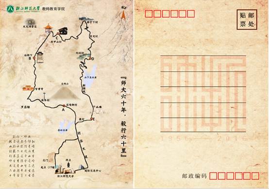 毅行队伍需先经过对月殿村、前庄头村,并由徐霞客古道翻越楼基山,再经过大岭村、鹿村等地,最后到达浙师大正大门,里程长达30公里。结合师大六十周年校庆的主题,本次毅行活动在石墙脚村、白路下、养甲山村、大岭村、鹿村、图文孔子像等地点分别设置了六个休息点,在每个休息点都有工作人员负责签到,以及浙师大拼图的发放,顺利走完全程才能集齐六块拼图。为了帮助大家顺利走完全程,在每个休息点都会给大家提供水果、牛奶、面包等食物,给毅行的参与者补充体力。