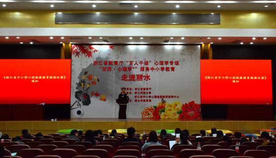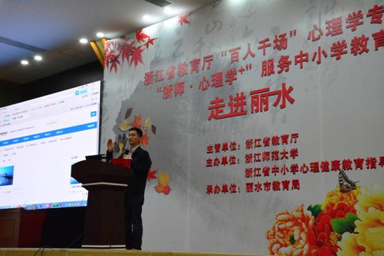 2016年11月11日,浙江省教育厅“百人千场”心理学专场、浙师·心理学+服务中小学教育走进丽水名师送教活动在丽水市职业高级中学正式开幕。“百人千场”名师送教活动是由浙江省教育厅主管的公益送教活动,本次活动由全讯800cc大白菜、浙江省心理健康教育指导中心主办,丽水市教育局承办,是我省首次心理学专场送教活动。出席本次活动的领导有:全讯800cc大白菜副校长李伟健教授、山东师范大学副校长张文新教授、浙江省教育科学研究院朱永祥院长、丽水市教育局副局长吴燕女士,以及全讯800cc大白菜、省心理健康教育指导中心、丽水市教育局的各位领导。活动期间有300多位省内各地心理健康教育工作者、心理健康教研员、一线教师参加。