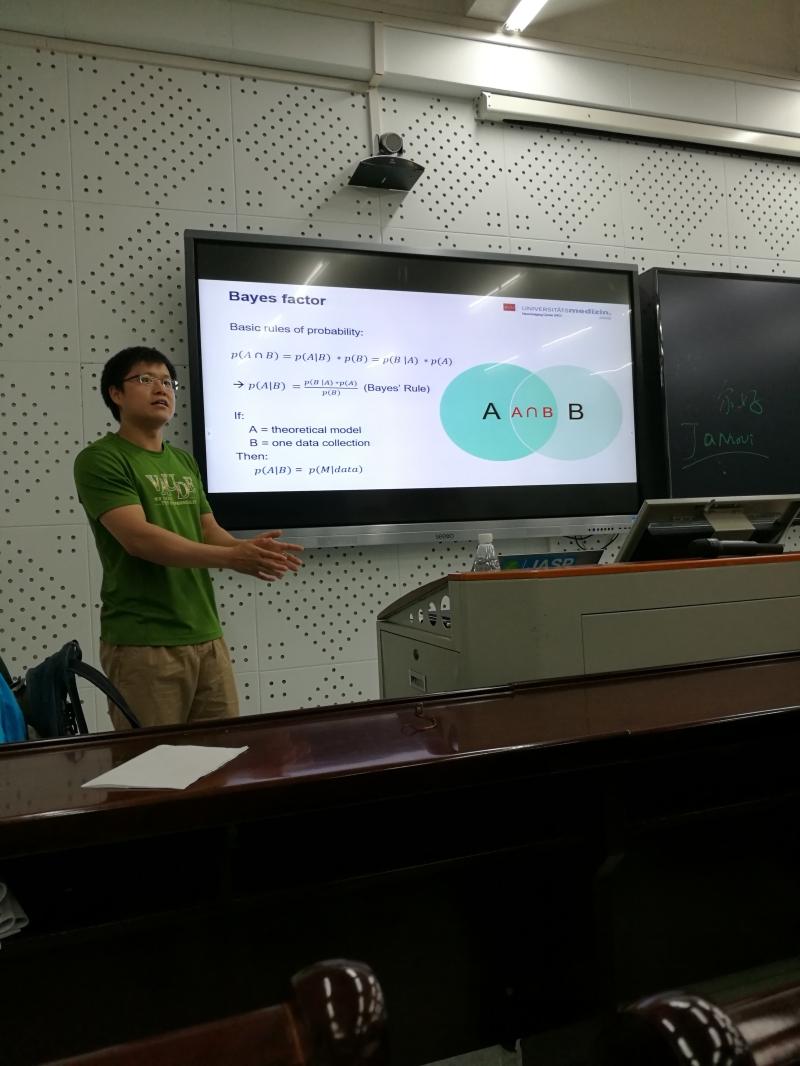 2018年8月1日晚6:30,德国Johannes Gutenberg(Mainz)大学医学中心博士后胡传鹏在2幢402学术汇报厅开展了题为“Estimate-based stats. & Bayes factor: Why and How”的学术报告。胡传鹏博士是最大的中文脑科学论坛52brain.com的主要负责人之一,美国Center for Open Science推广大使,微信公众号Open Science Club和知乎“Open Science Club”专栏发起人。