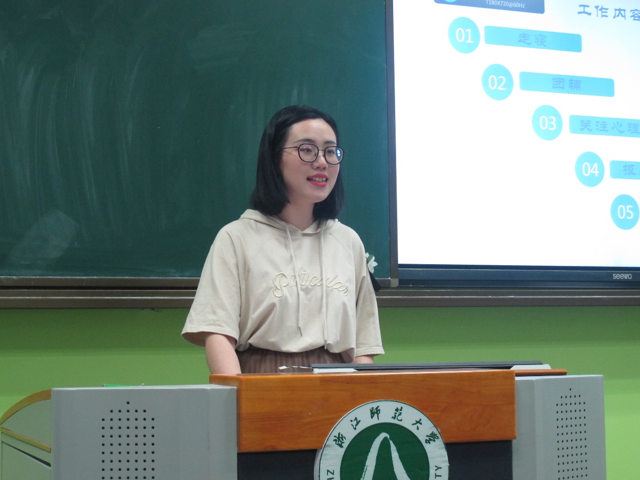 为进一步激发各朋辈辅导员的工作热情,促进学院心理工作的展开,5月12日晚,教师教育学院2018-2019学年朋辈辅导员述职会于16幢210教室开展。