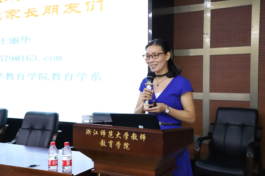 在专业介绍环节,教育学系主任王丽华、心理学系主任李新宇和教育技术学系主任张家华老师分别从发展历程、师资情况、就业方向、培养方案等角度详细阐述了各专业特色及发展优势。随后,新生家长代表就高中与大学的多方面差异,结合自己的教师经历,表示家长将积极配合老师培养孩子独立学习、生活的能力。