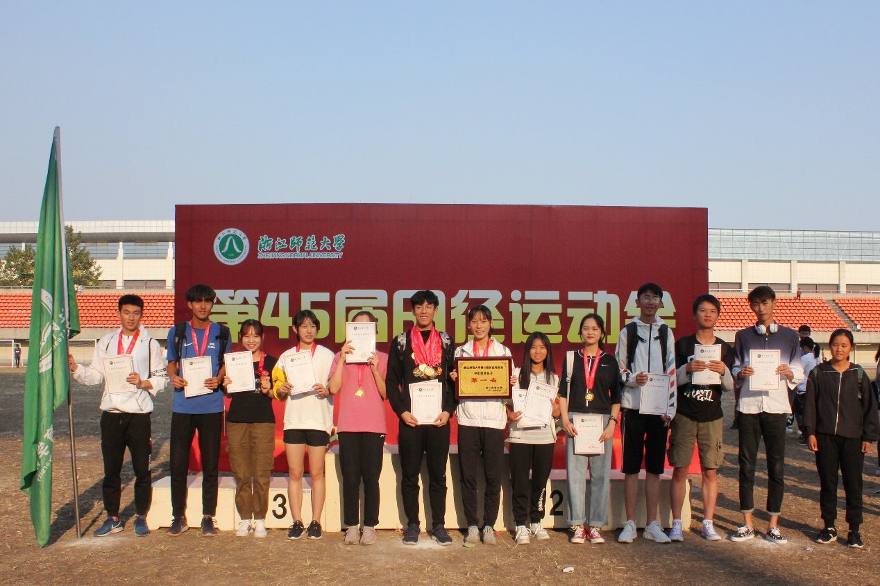 19日下午艳阳高照,田赛场上也是热闹非凡。女子三级跳决赛也传来捷报,戴津津和小陈也分别摘得冠军与亚军,为教育学院书写新的篇章。参加男子跳高决赛的陈坤同学更是在赢得金牌的同时打破了校跳高比赛的记录。运动员们在径赛场上也不甘落后,我院的施皓琪与安心同学先后夺得男子与女子400米栏的魁首,而李雨然和李辰茜也获得了女子二百米决赛的第四名与第八名。最后进行的是男子、女子4×400米决赛,我院运动员们团结协作,凭借着默契的配合,以压倒性优势在比赛中问鼎冠军宝座。其中,女子接力赛更是打破学校记录,再攀高峰。