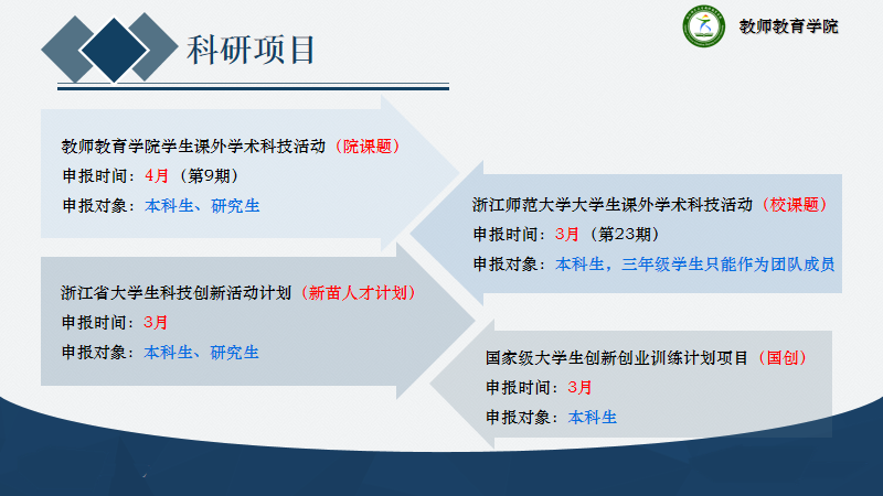 紧接着,叶青老师鼓励大家先去了解和参与科研项目,以院、校、新苗、国创为顺序进行一步一步的深入,以此积攒一些相应的经验,在有新颖点子之后便可以去参加三大重大科研竞赛(“互联网+”创新创业大赛、“挑战杯”大学生课外学术科技作品竞赛、“挑战杯”全国大学生创业计划大赛)。三年来,我院学子申报了多项课题并在各大竞赛中取得了丰硕成果,这给接下来想要涉足这一片领域的同学们提供了一个良好的平台。叶老师认为这是一个良性循环,只需要踏出自己的舒适区,抓住机会,每个人在这里都能获得相应的成长。
