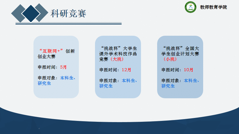 为进一步推进我院创新创业教育工作开展,营造良好创新创业文化氛围,激发学生创新创业意识与热情,引导学生在创新创业中增长智慧才干,10月29日晚,我院2021年教师教育学院创新创业分享交流会于17-112报告厅顺利召开。院党委副书记狄伟锋老师、院团委书记叶青老师、学工办辅导员蒲伟军老师及本硕各年级学生参与此次活动,邱亦可主持本次活动。同时本次交流会也是教师教育学院党委“我为群众办实事”系列活动之一。
