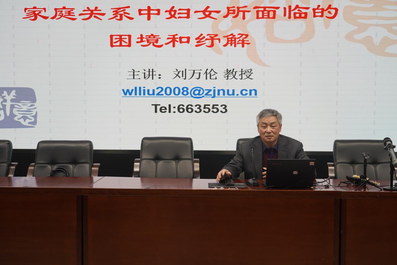 3月25日下午,由校妇联、校工会女职委主办、教师教育学院承办的“爱的港湾”家庭教育讲座第二讲在教师教育学院报告厅开讲,我系教授、博士生导师刘万伦应邀作了《家庭关系中妇女所面临的困境和纾解》的专题讲座。因疫情防控要求,讲座线上和线下同时进行。