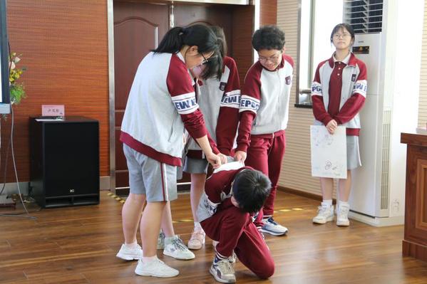 接着,同学们观摩了骆老师带来的主题为“与压力共舞”的初中心理健康辅导课。借助“倒水活动”的环节设置,骆老师巧妙引入“压力”主题,带动了同学们的积极性。在小组展示过程中,骆老师循序渐进,借助“你的压力有哪些”和“如何解决你的压力”两个思考问题,引导学生以“压力雕塑”的形式,将这些情绪具体化,鼓励同学们勇敢地将内心感受用语言表达出来。使同学们在自省中寻找到缓解渠道,更好的面对“压力”。整节课生动有趣,气氛活跃。
