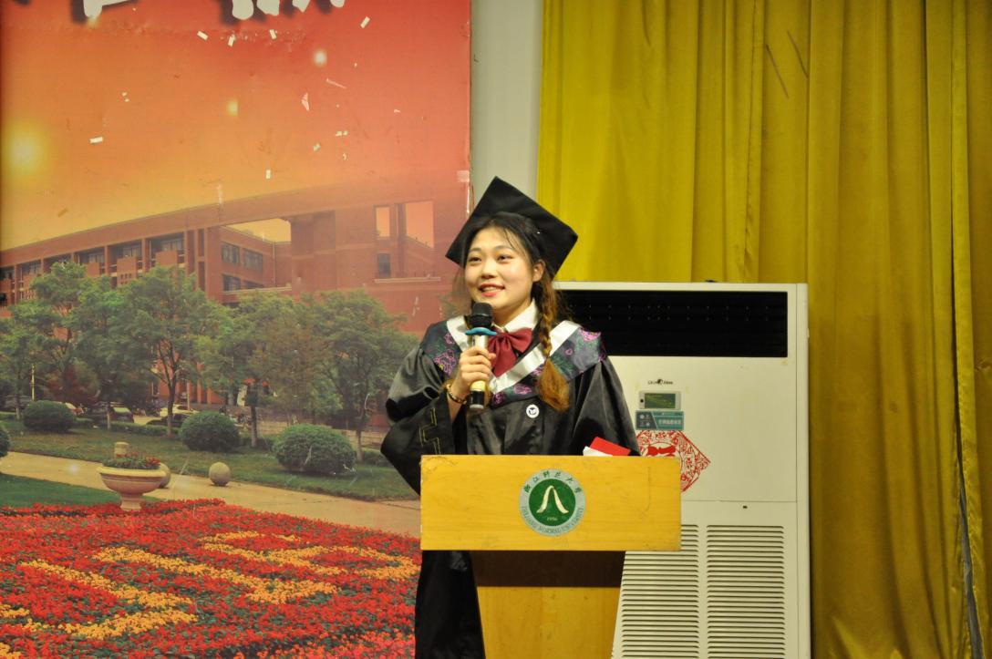 优秀学生代表党思怡讲述自己美好的大学生活,字字珠玑,饱含对大学四年的深刻总结和深切不舍,将同学们的记忆拉回到一个个熟悉的场景。