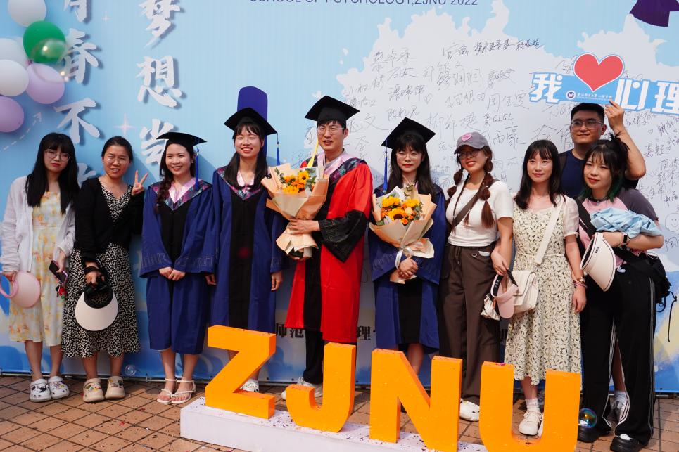 6月11日下午,毕业生们在大学生活动中心门口,留下了自己在师大定格的青春印记———将自己与浙师和全讯600cc大白菜官网的美好记忆封存在此。进入一楼多功能厅,精彩纷呈的歌舞、诗朗诵,以及师生全体的大合唱为这场演出画上了圆满的句号。全讯600cc大白菜官网院长孙炳海,党委书记马莉,副院长汪俊、贾磊,硕博士导师、本科毕业班班主任、辅导员、行政老师以及2023届全体毕业生共同见证了这一场属于心理毕业学子们的盛典,祝愿每一位心理学子都能奔赴星辰大海,找到属于自己的理想远方。