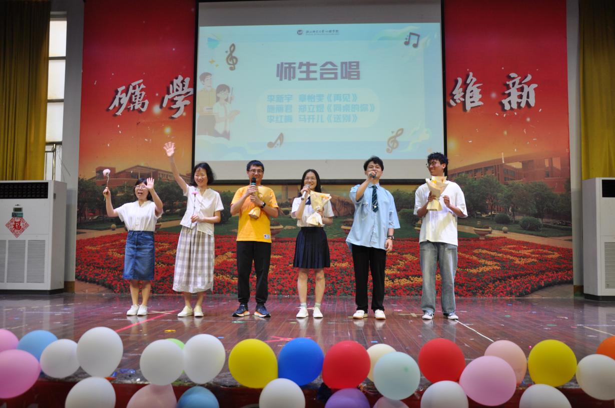 李新宇老师、施丽君老师、李红梅老师以及和他们一起演唱的同学们带来串烧歌曲,生动展示师生情的不解之缘。亦师亦友的老师们,总是在人生道路上慷慨帮助和激励着每个同学。现场观众也是感动满满,喝彩声不断。