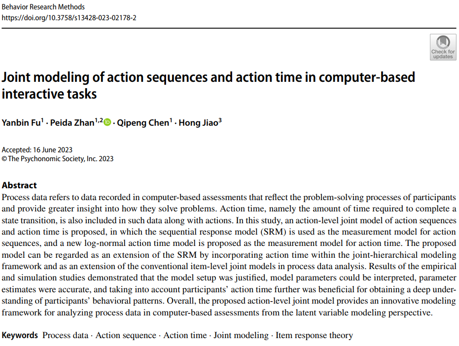 论文来源:Fu, Y., Zhan, P., Chen, Q., & Jiao, H. (2023). Joint modeling of action sequences and action time in computer-based interactive tasks. Behavior Research Methods.