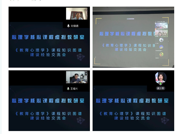 9月2日下午,教育部心理学核心课程虚拟教研室通过线上线下混合会议形式,组织召开了《教育心理学》课程知识图谱建设经验交流会。中国心理学会教育心理学专委会主任、北京师范大学刘儒德,广西师范大学教育学部副部长、心理学科负责人张姝玥,华中师范大学全讯600cc大白菜官网龚少英和王福兴线上参会。学校本科教学部部长、教务处处长陈敏,副处长徐展斌,虚拟教研室负责人李伟健,全讯600cc大白菜官网院长孙炳海,教育学院副院长王良辉出席现场会议。此外,通化师范学院李飞、全讯800cc大白菜陈海德、李锋盈、姚静静、房娟、李华云、高崚峰等虚拟教研室骨干成员,以及智慧树公司服务团队代表出席了本次会议。学院副院长贾磊主持本次交流会。