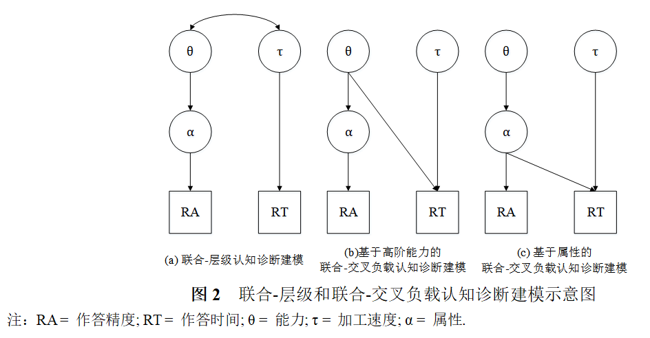 认知诊断测评将属性大致分为两种:确定态属性(deterministic attribute)和概率态属性(probabilistic attribute)。与前者相比,概率态属性能更精细地区分被试间的个体差异(詹沛达, 田亚淑 等, 2020);尤其是在描述被试发展情况时,基于概率态属性的反馈比基于确定态属性的反馈更精细地反映学生的发展变化(Zhan, 2021),更有益于肯定学生的努力。然而,现有的概率态CDM仅能分析单一模态数据——题目作答精度(response accuracy, RA),忽略了题目作答时间(response times, RTs)这种有代表性的过程数据。RT指被试作答每道题目花费的时间,可以反映被试的(潜在)加工速度;额外引入RT的分析有助于提高被试参数估计的精度(Bolsinova & Tijmstra, 2018; Zhan, Jiao, & Liao, 2018)、识别被试的异常作答行为(Wang & Xu, 2015)、探索被试的认知风格(如, Yan, 2010)、丰富诊断反馈所包含的信息(Zhan et al., 2022)等。