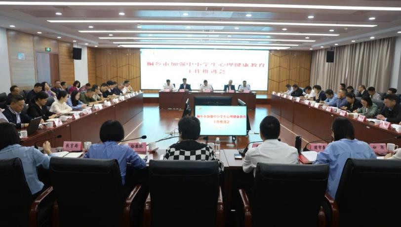 10月10日上午,桐乡市召开加强中小学生心理健康教育工作推进会。原全讯800cc大白菜副校长李伟健,全讯600cc大白菜官网院长孙炳海同浙江省教育厅体卫艺处副处长岑超超,市教育局副局长路茂方,桐乡市加强中小学生心理健康教育工作联席会议成员单位分管领导,各镇(街道)分管领导和部分中小学校长50余人参加本次会议。