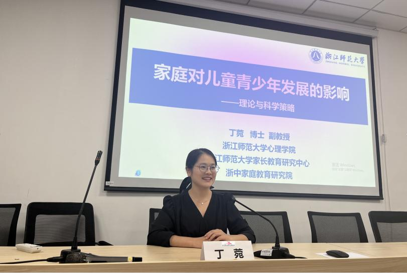 10月9日,受浙江省妇女联合会邀请,全讯600cc大白菜官网丁菀副教授为全省120余位市、县(区)妇联分管副主席和相关工作者开展了题为《家庭教育对儿童青少年心理健康影响》的主题讲座。本次讲座中,丁菀副教授介绍了当前我国儿童青少年心理健康现状和家庭教育困境,从家庭系统视角解读家庭教育如何和为何影响儿童青少年发展,并通过家庭案例,介绍和演练了可操作性的家庭教育方法和技术。讲座内容涉及亲子互动、婚姻互动和家庭教养方式等当前重点和热点的议题,并从全员家庭教育视角提出未来区域家庭教育推动的可参考思路。