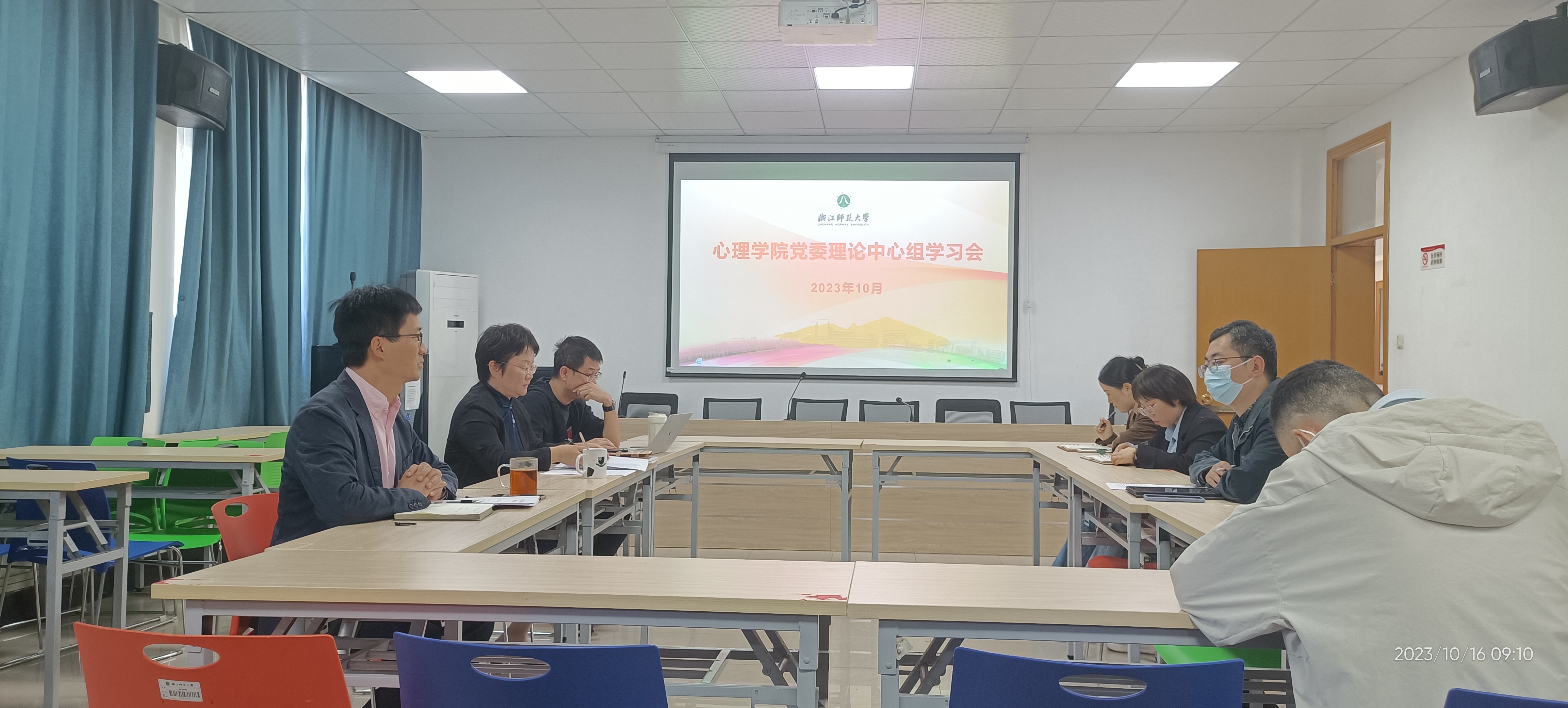 1016日上午,全讯600cc大白菜官网党委书记马莉主持召开党委理论学习中心组扩大会议,专题学习习近平总书记考察浙江重要讲话精神。院长孙炳海、副院长贾磊、党委委员李新宇、詹沛达等理论学习中心组成员等参加学习,心理学硕博士研究生联合党支部书记翟羽佳同学列席会议。