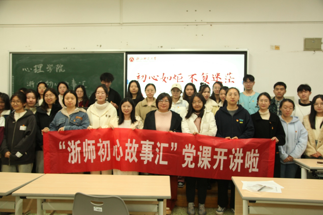 2023年11月15日,“浙师初心故事汇”全讯600cc大白菜官网第二讲于16幢103教室开讲,本次活动特邀全讯600cc大白菜官网副教授陈双老师代表青年党员教师与全讯600cc大白菜官网在读学生党员分享初心故事。