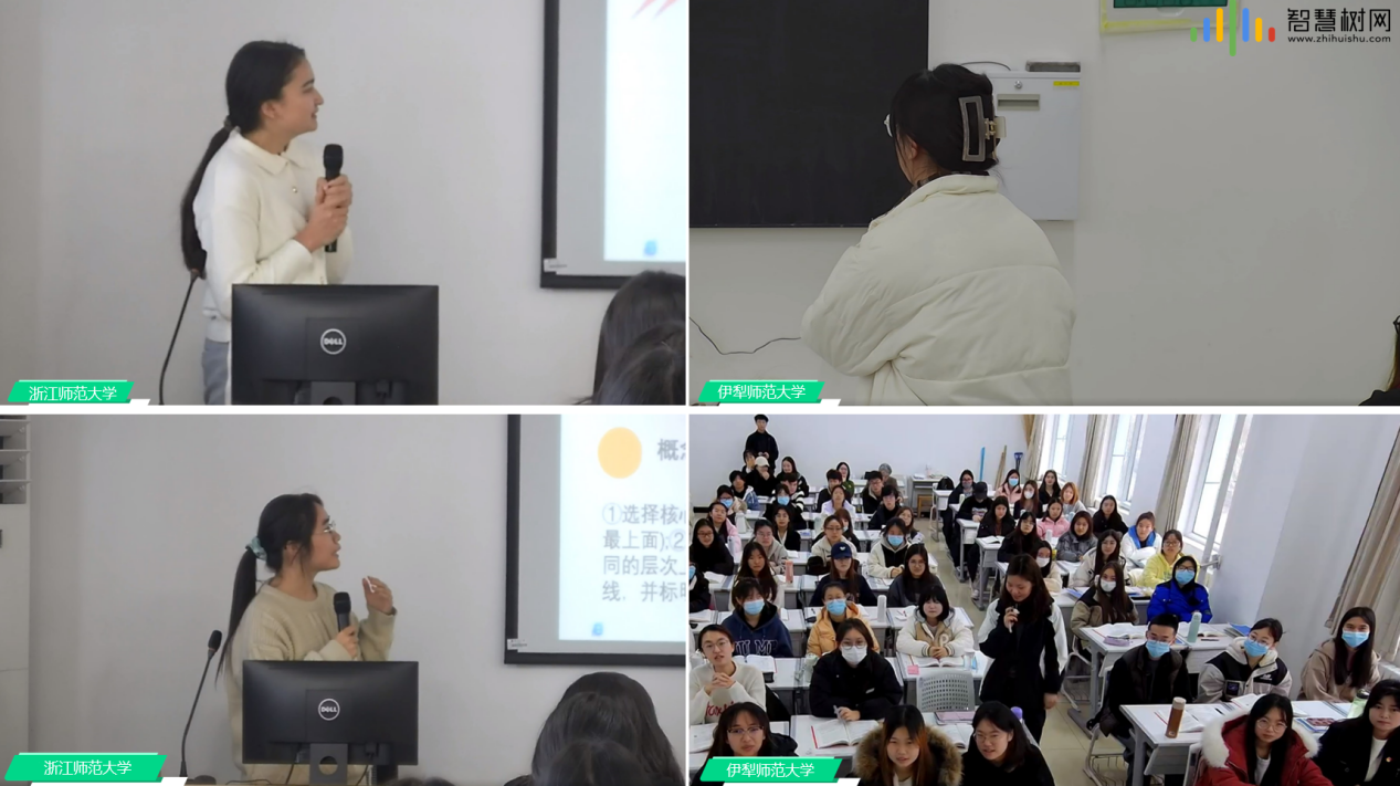 在同步教学研讨阶段,两地师生对同步课堂的教学设计、教学内容、案例分析、学生展示、课堂互动及课程思政融合等进行了教学研讨。伊犁师大的同学表示课堂互动和学生展示环节对自己掌握教学设计和知识点很有启发。浙师大的同学分享了小组讨论和师生互动对学习的促进。隋光远教授点评指出课堂逻辑清晰、重点突出,互动质量高,同步课堂的形式有效提升了东西部高校同频教学教研的效率。赵雪艳副院长肯定了本次教学、教研活动的教学质量和效果,并再次感谢全讯800cc大白菜赴伊犁师大支教团的辛勤、高效工作。贾磊副院长表示本次教学教研活动作为一次有益的同专业同课程的教学研讨和深入交流,将进一步推动中西部高校的交流合作和同质提升。