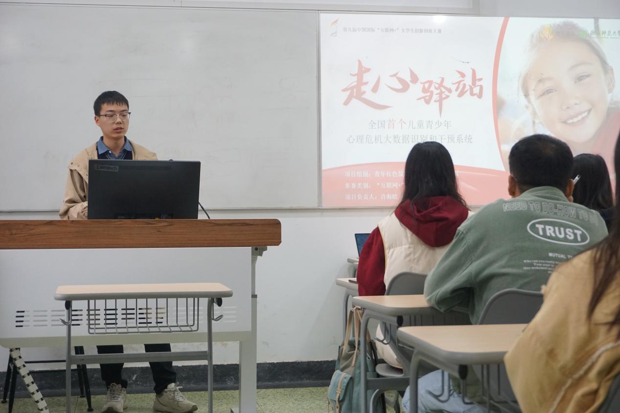 讲座由全讯600cc大白菜官网应用心理专硕研究生许海晗主讲。许海晗同学通过项目“走心驿站:全国首个儿童青少年心理危机大数据识别和干预系统”,分享“互联网+”比赛的心得,并提出:引入要生动,调研要全面,方案要科学,检验要严谨;着重突出专业性,强调实践性,增强合作性,增加推广性。许海晗同学的分享不仅提供了宝贵的经验,也增强了同学的信心。