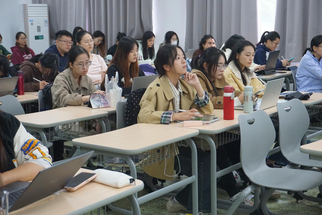 陈海峰老师从什么是主题演讲、如何开展主题演讲、如何准备主题演讲三个角度介绍提高针对项目的语言表达能力的方法。陈海峰老师的讲座不仅讲解了要点,演示了规范,也强调了逻辑,开拓了思路,为同学们“想清楚、说明白、讲出彩”提供了指导。