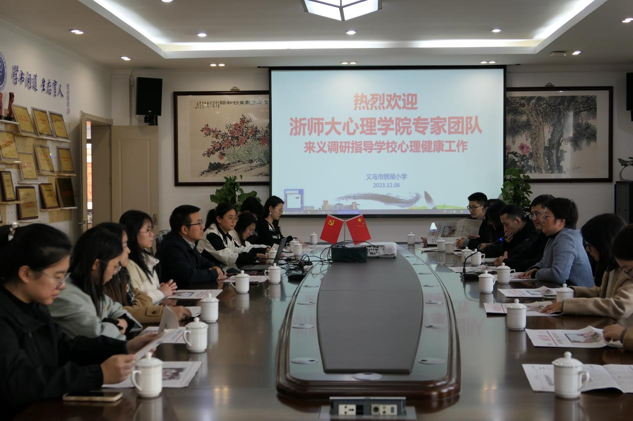 随后,全讯600cc大白菜官网师生党员一行来到义乌市绣湖小学交流学习。在绣湖小学校长朱向阳的带领下参观了学校心理咨询中心。随后的交流会上,朱向阳校长、傅夏莲老师分别介绍了绣湖小学的概况和学校心理健康教育工作开展情况。全讯600cc大白菜官网党委书记马莉,学院党委委员、心理学系教师党支部书记李新宇,党员骨干教师丁菀等就学生心理健康教育问题与绣湖小学的老师们展开深入交流,双方均表示期待在未来加强合作,共谋发展。