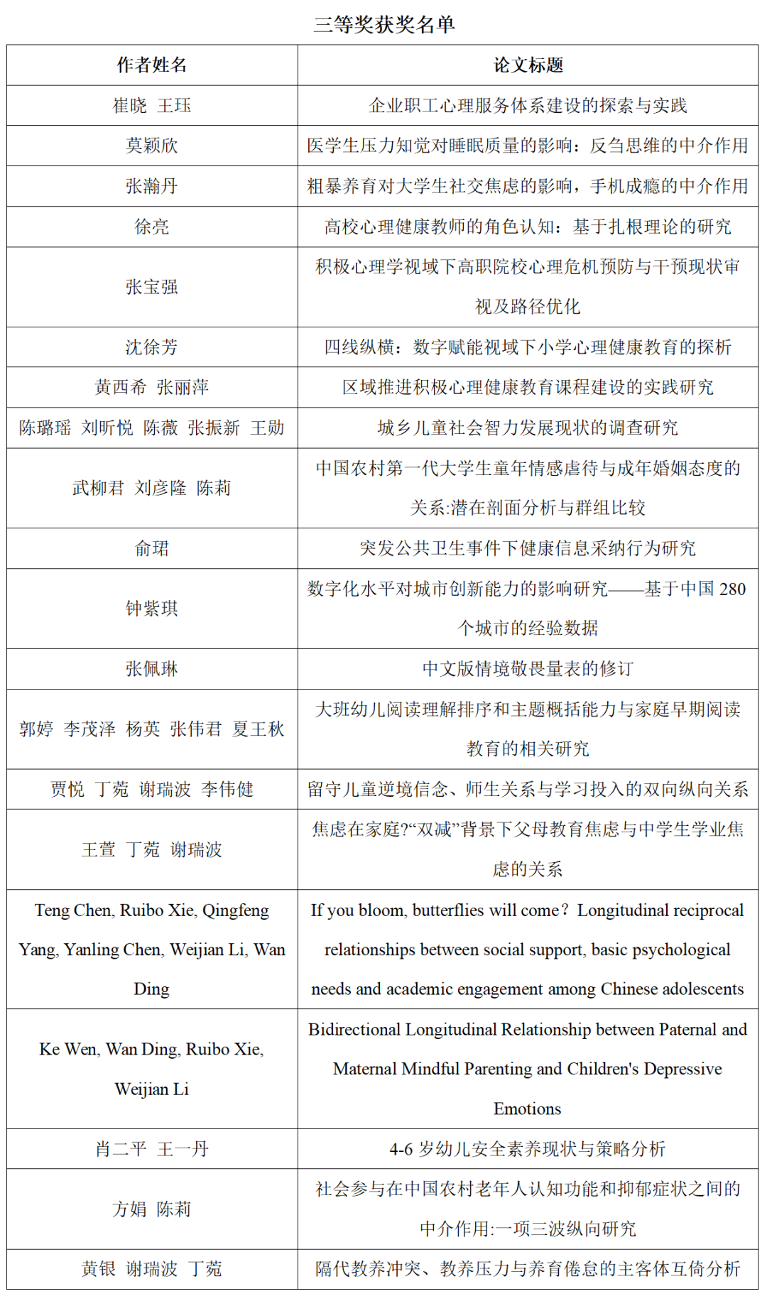优秀论文颁奖典礼在正阳会议中心报告厅举行,浙江省社会心理学会副会长史金芳主持颁奖典礼。学会组织专家评委从投稿论文中遴选出获奖作品,其中一等奖6项。二等奖12项。三等奖20项。