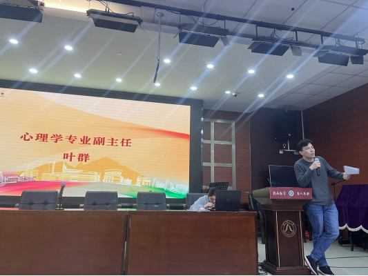 随后,我院双创指导教师代表、应用心理学专业副主任叶群分享了以往国创、省创项目的指导经验,项目各阶段的任务要求和学生参与项目的成长体验。同时向大家介绍了学院专业教师的研究领域和方向,鼓励同学们联系指导老师,申报双创项目。