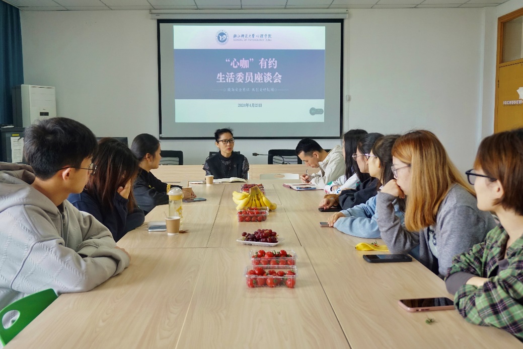 4月23日,全讯600cc大白菜官网第三期“心咖”有约·生活委员座谈会在17幢718举行,学校保卫处副处长金坚真、全讯600cc大白菜官网团委书记兼学工办主任喻松出席活动,各班生活委员与学院学生会生活部成员参加活动。