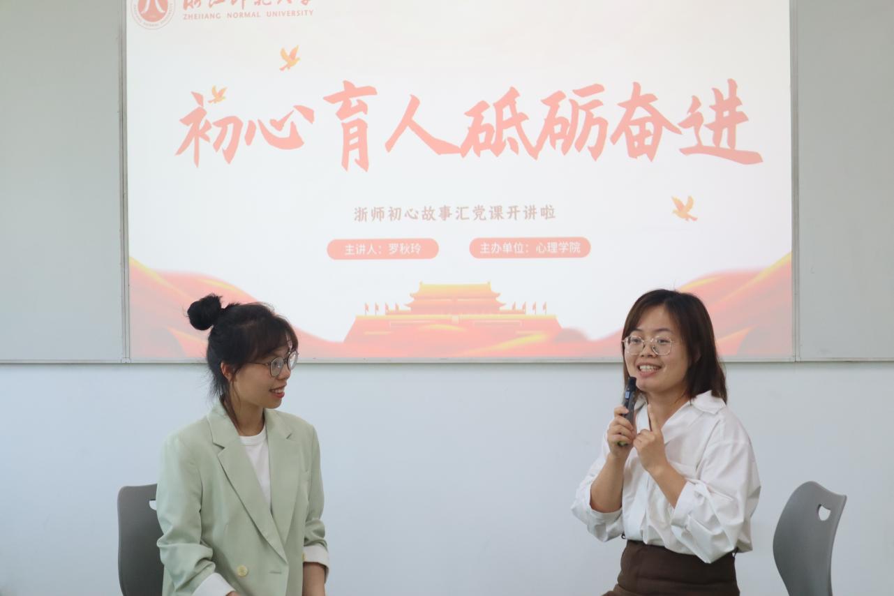 2024年5月8日,“浙师初心故事汇”全讯600cc大白菜官网第三讲于16幢207教室开讲,本次活动特邀全讯600cc大白菜官网罗秋铃老师代表青年教师党员与全讯600cc大白菜官网在读学生党员分享初心故事。