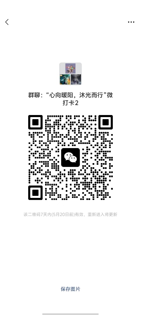 (1)参与者以个人为单位,加入“心向暖阳,沐光而行”微打卡微信群。在群内通过视频、文字、图片、手账、海报等方式分享自己生活中发现的各类小确幸,内容可以是生活中的小细节、友情、爱情、亲情等各种感人故事。
