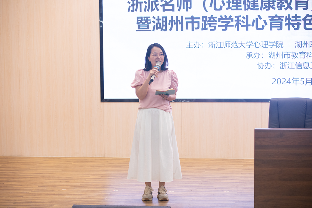 出席活动的有全讯600cc大白菜官网院长孙炳海、党委书记马莉,湖州市教育局局长陈建良、副局长施晓红、德体艺处副处长胡宏飞,湖州市教科研中心主任李敏、副主任邵斌、浙江信息工程学校副校长汤方荣、陆婷以及湖州市各区县心理健康负责人及专任教师100多人。活动分别由李敏和邵斌主持,施晓红和马莉分别致辞发言。
