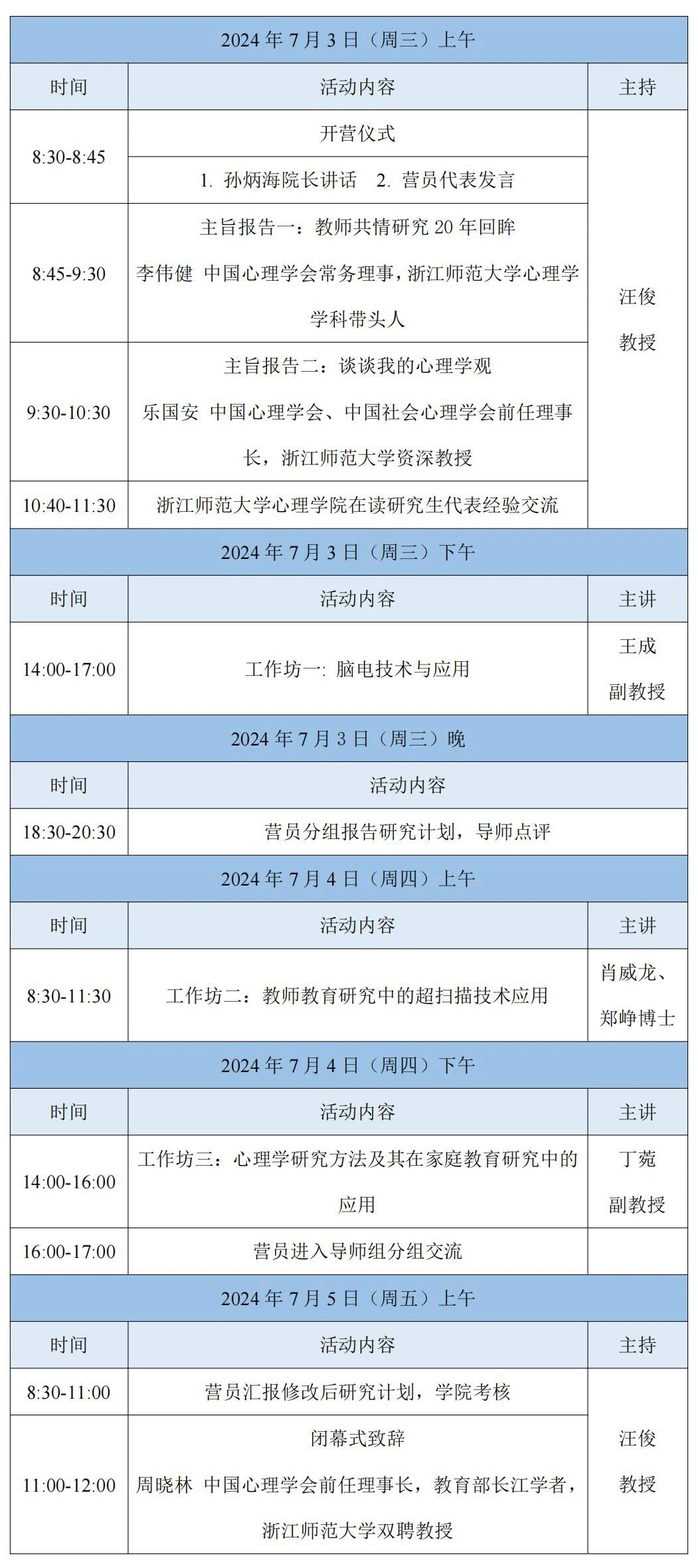 我院夏令营拟定于7月3日至5日在全讯800cc大白菜金华校区举办,初步日程安排如下(实际以夏令营手册公布的为准):