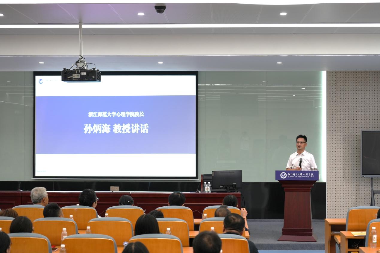 会上,孙炳海院长首先代表学院向全体新生致以最诚挚的欢迎。在简要回顾了学院近年的办学情况和发展成就后,孙炳海院长从“学什么”、“怎么学”、“怎样学才算学好”三个方面表达了对新生的期望:第一,希望同学们在心理学领域勇敢探索新方向,同步精进专业素养与个人综合素质,实现全面发展;第二,鼓励同学们实现文理交融、研究与应用并重以及国内外科研动态深度融合的“三结合”,拓宽视野,解决社会难题;第三,期望同学们践行好“5+X”理念,构建扎实的心理学科学知识体系,掌握独特的研究方法,怀揣对人类的深切情怀与学习兴趣,成为善于启迪智慧的教学者。在追求并创造显著的学术成果的同时,秉持合作精神与艰苦奋斗的品格,共同为心理学领域的进步贡献力量!