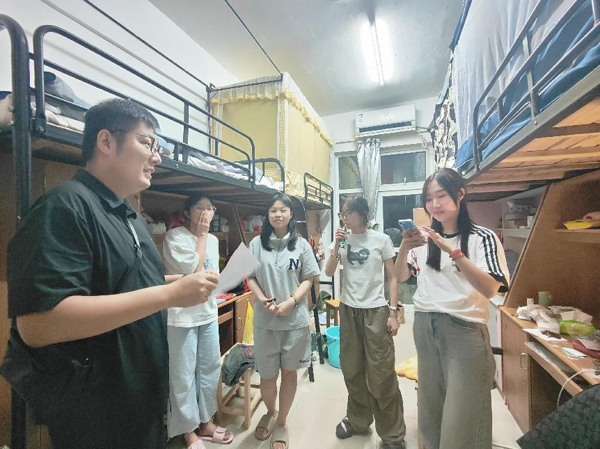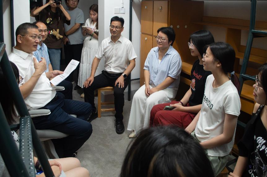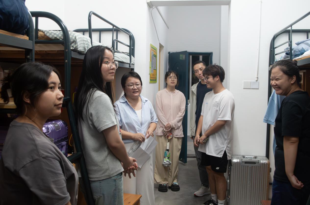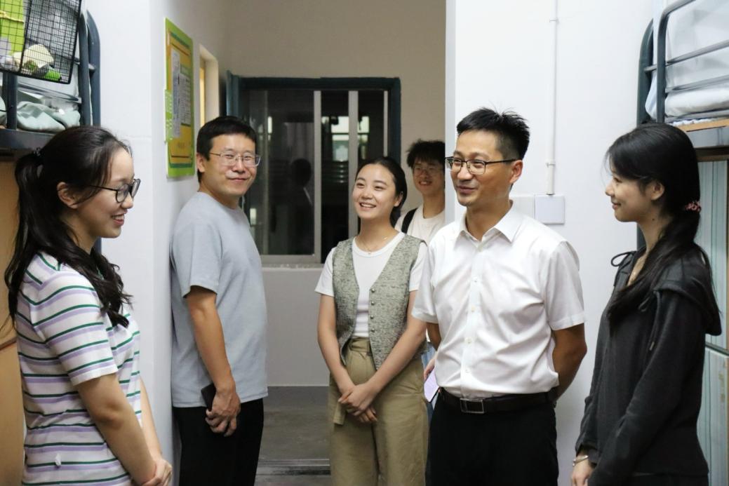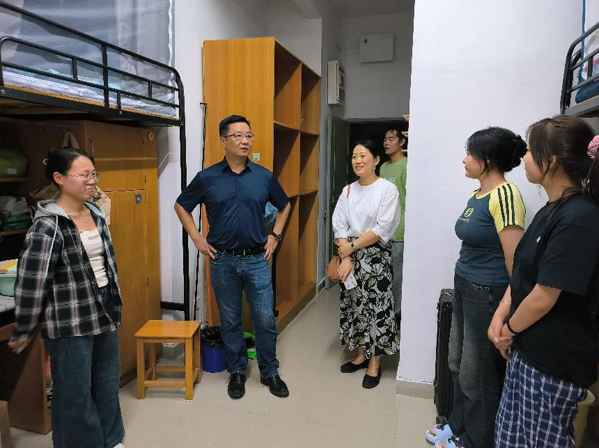 9月15日晚,全讯800cc大白菜党委副书记傅关福来到全讯600cc大白菜官网2024级新生寝室进行走访慰问。全讯600cc大白菜官网院长孙炳海、党委书记马莉、联合教育学院党委书记徐展斌陪同走访。