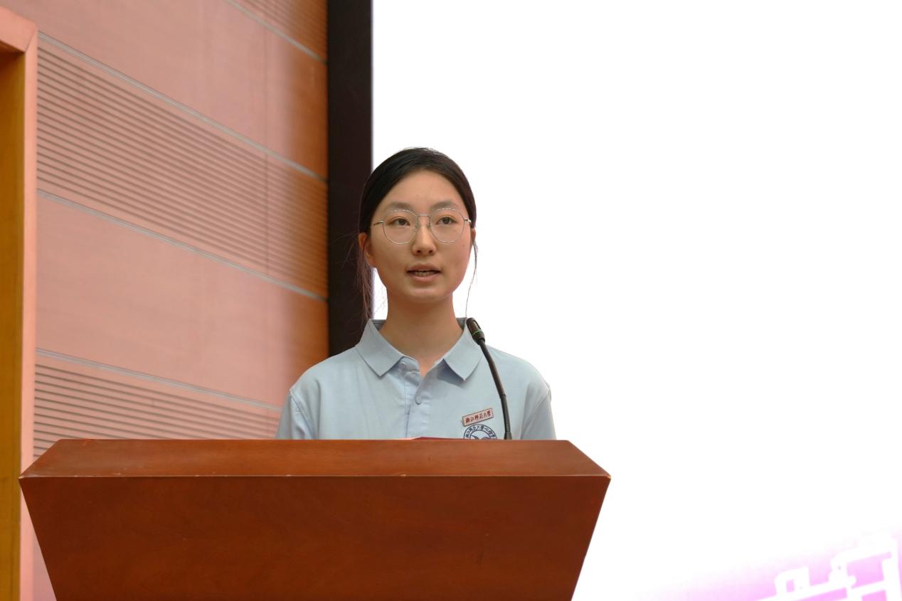 老生代表2022级专业硕士研究生黄银为新生们做了学习和科研的分享,新生代表心理241班的吕天依则对即将到来的大学生活作出愿景。