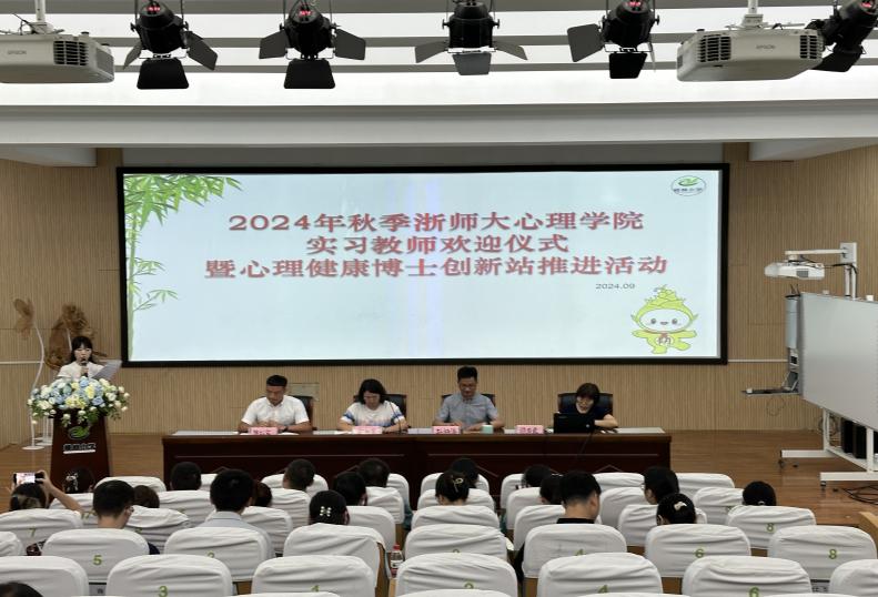 2024年9月19日上午,浙师大全讯600cc大白菜官网实习欢迎仪式暨心理健康博士创新站推进会在义乌市楂林小学召开。义乌市教育局党委委员、副局长俞向军,浙师大全讯600cc大白菜官网院长孙炳海、教务办主任施丽君、实习指导教师房娟、全讯600cc大白菜官网教师、义乌市教育局心理副校长郑阳、肖威龙,楂林小学校长陈孙宾等出席了此次会议。会议由全讯600cc大白菜官网实习生郑玉主持。