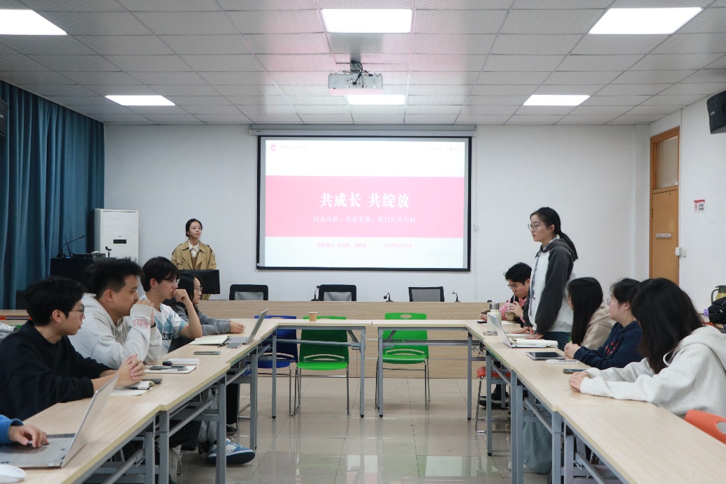 学生会科研部和青大队成员首先进行了自我介绍,简要分享了自己所在的班级以及任职情况。