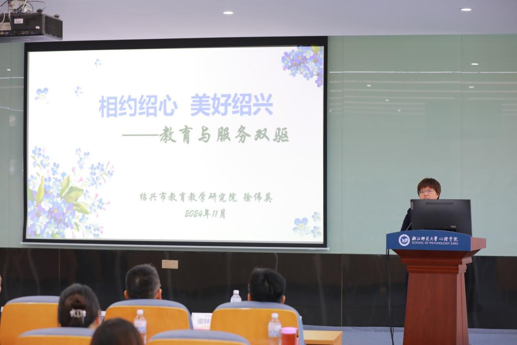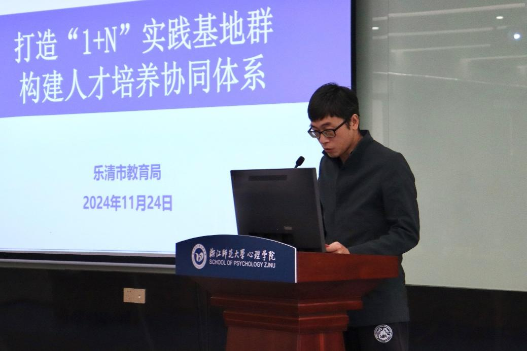 孙炳海院长作题为《心理赋能:全讯600cc大白菜官网的社会服务工作》的报告,重点介绍了学院在社会服务方面的诸多做法,同时强调学院在人才培养和社会服务方面的双重使命。实践基地代表桐乡市教育局副局长路茂方、浦江县教育局副局长徐双莲、乐清市教育发展中心主任柳恩理、义乌市教育局副局长俞向军、温岭市教育局副局长谢林秋、龙游县教育局副局长陈孝余分别作《阳光桐心 2.0:桐乡市中小学心理健康教育的实践与探索》《“心路 e 通”:浦江县学生心理健康治理体系的构建》《多举措·聚合力:协同构筑学生成长“防护墙”》《双向赋能,共筑成长:中小学校与心理实习教师的协同实践》《“温”润心“岭”:温岭市心理健康教育实践与探索》《“有礼家风·走心驿站”:龙游县推进建设完善未成年人健康成长服务体系的实践与思考》的专题报告,分享各地区在心理健康教育方面的经验成就与创新思路。