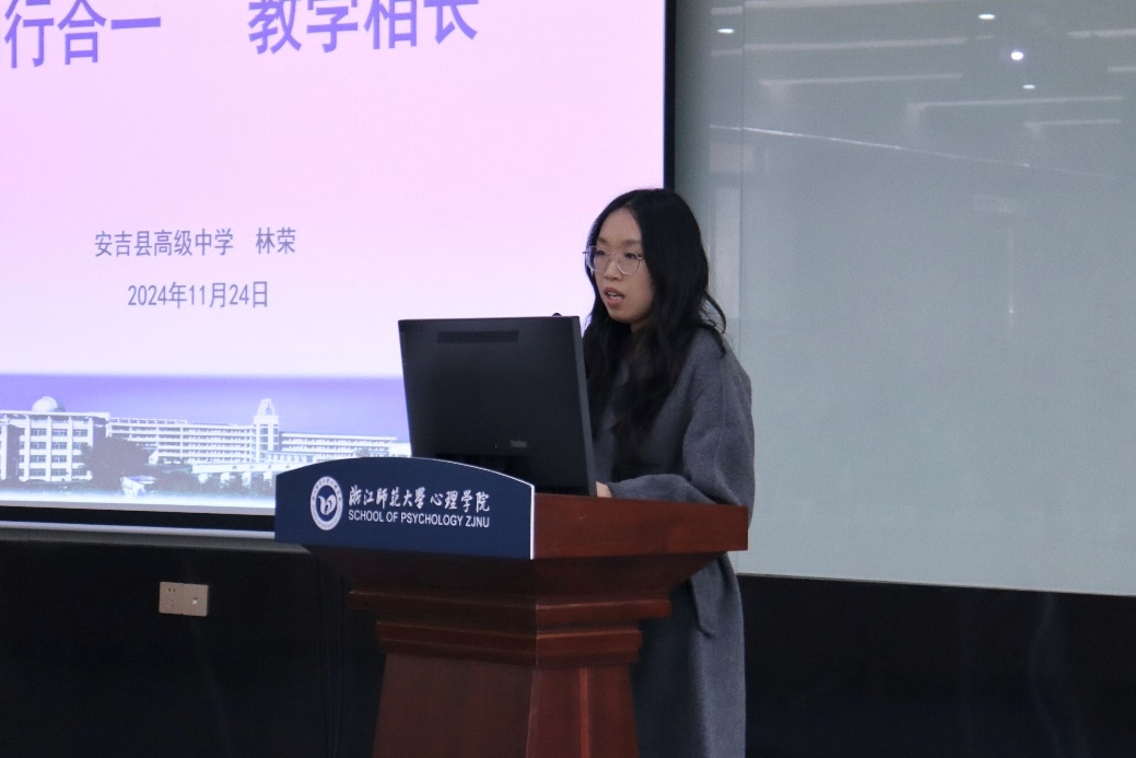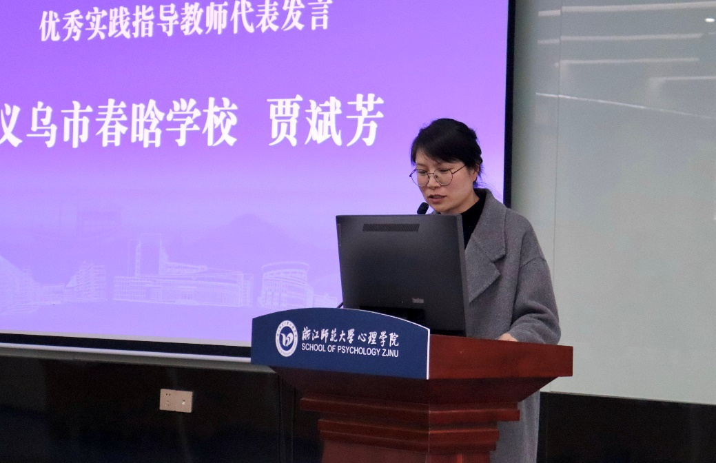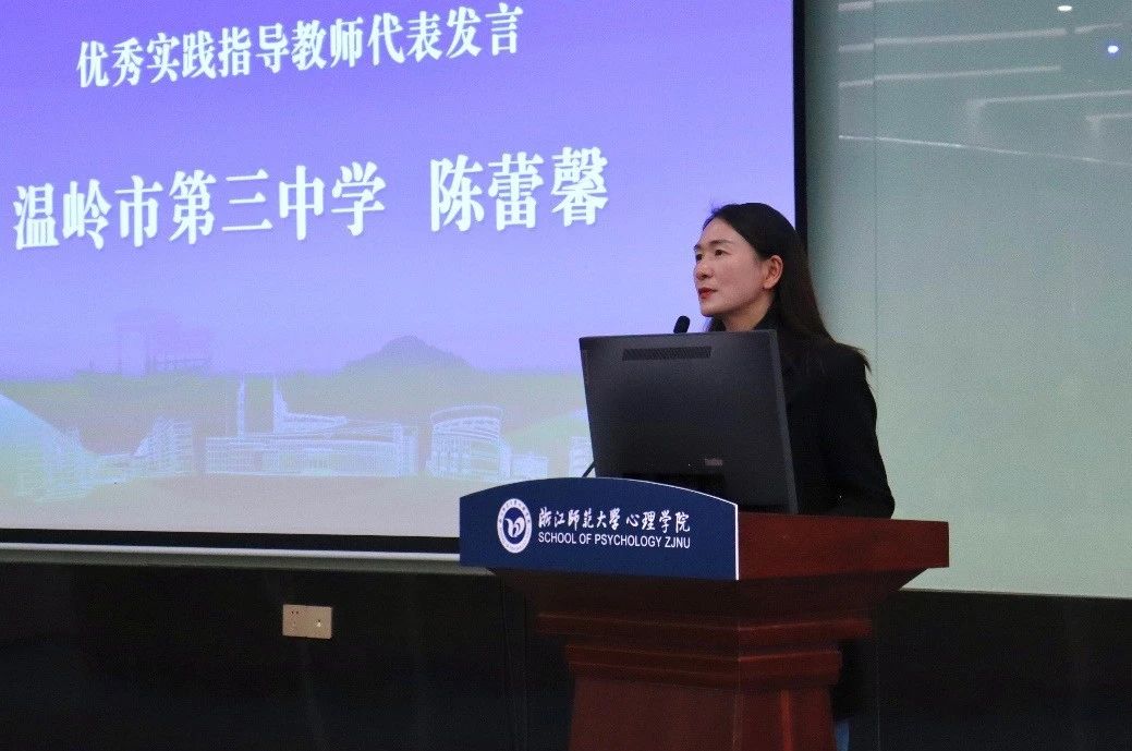义乌市春晗学校贾斌芳、温岭市第三中学陈蕾馨作为优秀实践指导教师代表分享了在心理健康教育实践指导中的宝贵经验和深刻感悟。