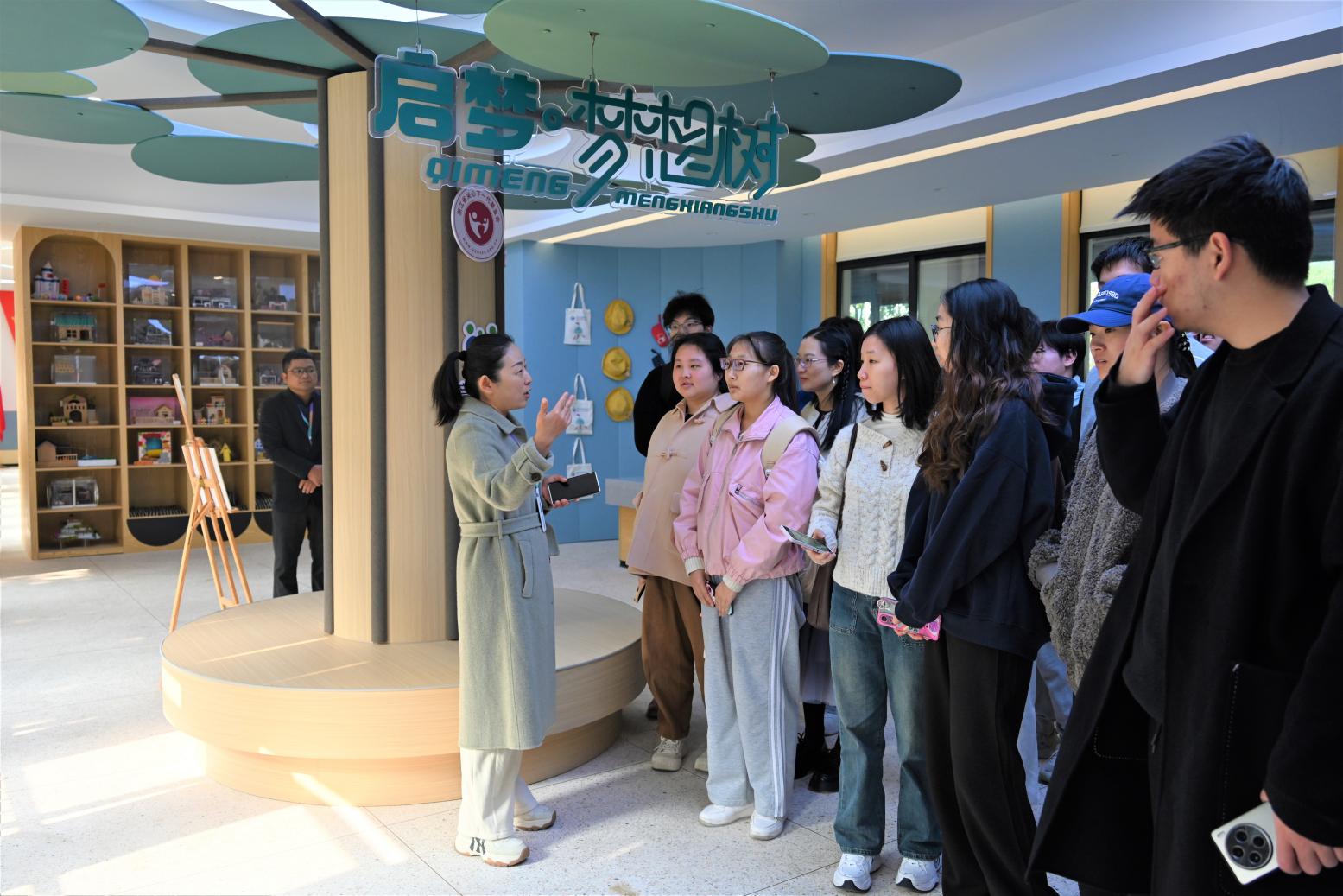 在南苑小学校长占丽娜以及专职心理老师冯逸雪的带领下,同学们参观了南苑小学的心理辅导中心,了解了学校心理咨询室的基本配备。占丽娜校长向同学们介绍了近年来南苑小学以及湖海塘小学的心理健康工作,使同学们更加熟悉心理健康教育的具体方式。
