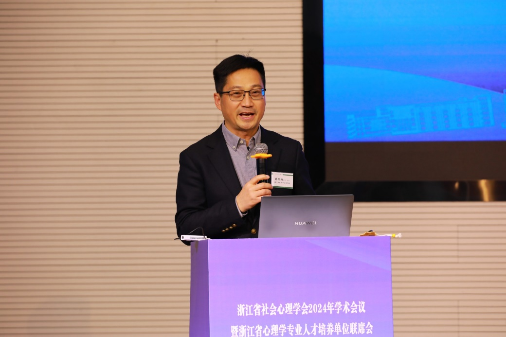 佐斌代表中国社会心理学会致辞,充分肯定浙江省社会心理学会的出色工作。他强调高校、政府和社会需支持和帮助培养兼具理论和实践能力的专业人才,以推动社会心理服务体系的建设,促进个体心理健康和社会适应,维护社会和谐稳定及国家的长远发展。