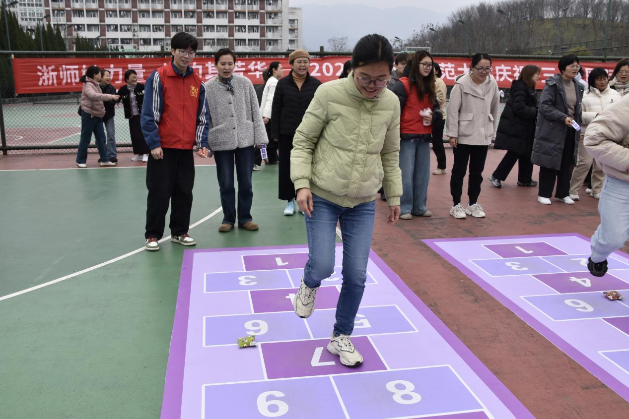走进校工会为全校女教工精心准备的趣味活动区,妙趣横生的活动瞬间点燃了女教师们的热情。背球同跑,在默契与平衡的双重考验中,笑声与欢呼声此起彼伏;投球入杯,女神们气定神闲,展现非凡技艺;趣跃方格,则是轻盈跳跃,衣袂飘飘,尽显优雅风采;诗词接龙中,大家才思敏捷,尽显深厚文学素养。体育与智慧的双重挑战让女神们乐此不疲,活动现场洋溢着欢乐与温馨。