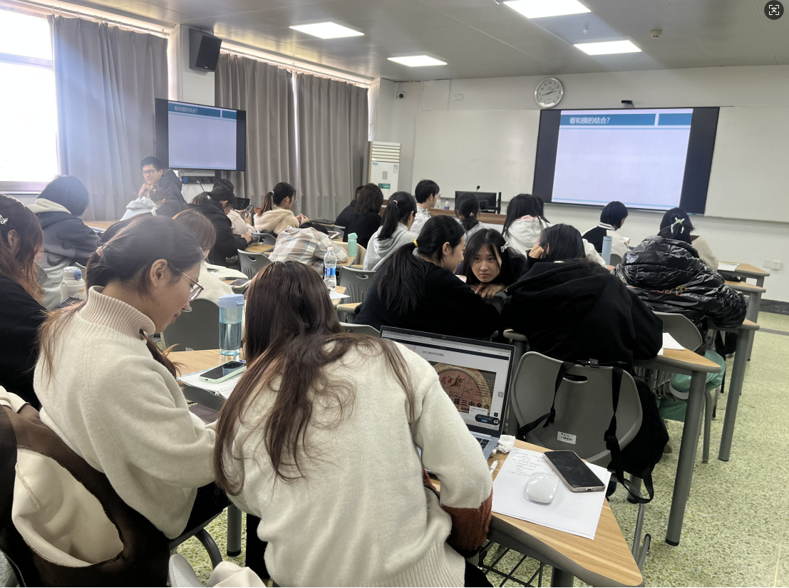胡老师深入浅出、层层剥茧、刨根问底,向大家复现了这些经典研究的背景、发生过程、关键要点、创新之处及后续启发,同时,她鼓励学生结合个人兴趣选择研究任务,并自主设计真实问题的研究方案。课上同学们不仅加深了专业认识,还收获了求索知识的本真乐趣。