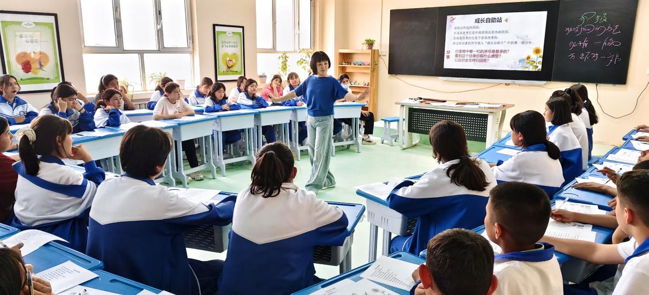 郑晶晶的《积极归因》心理课上,运用"成长乘务员"情景模拟,引导学生通过积极归因,将成长中的烦恼转化为正向情感体验。