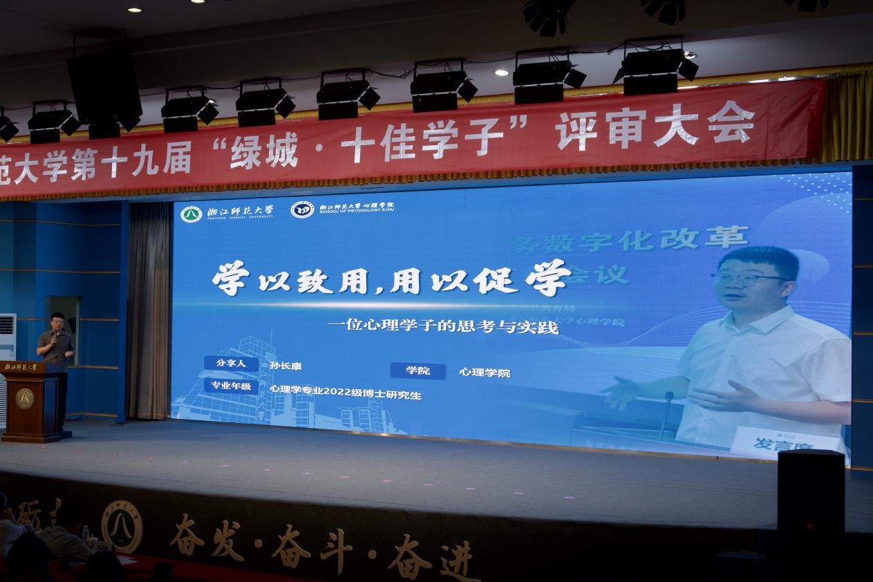 5月14日下午,全讯800cc大白菜第十九届“绿城·十佳学子”评审会在大学生活动中心二楼报告厅隆重举行。经过前期严格评审,15名候选人脱颖而出,进入现场评审环节。最终,我院2022级博士研究生孙长康凭借卓越的综合表现荣获“绿城·十佳学子”荣誉称号,心理223班王维苑获“绿城·十佳学子”提名奖。