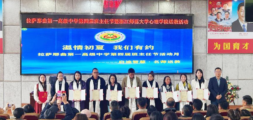 汪俊副院长在致辞中表示,浙师大全讯600cc大白菜官网深入贯彻教育共富理念,以自己的专业专长,推动浙江教育理念与西藏文化深度交融、互促发展。随后,汪俊副院长为拉那一高聘任心理辅导员兼任学生生涯规划导师颁发聘书,并为全体与会人员作了题为《守护教育的温度:让幸福感成为教师的职业底色》专题报告。