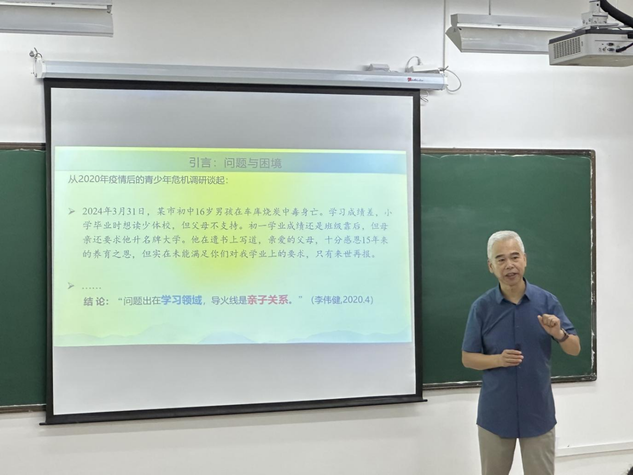 我院深度践行“教育援疆”使命,积极构建东西教育协作桥梁:在读硕士研究生沈栎作为我校支教团成员驻点支援伊犁师大建设,同时我院2012级本科毕业生龙芳芳以骨干教师身份参与本次培训,充分彰显学院人才培养的延续性与实践转化力;李伟健教授、孙炳海教授更克服地域限制,专程为伊犁地区中小学心理健康教师开展《学校全员家庭教育指导:内涵、挑战与实施策略》《教师共情与心理健康教育素养》专题培训,将前沿学术成果精准“输送”至祖国西北边陲。两院紧密联动,在伊犁这片教育沃土上持续深耕,为区域教育高质量发展注入强劲的浙师智慧。