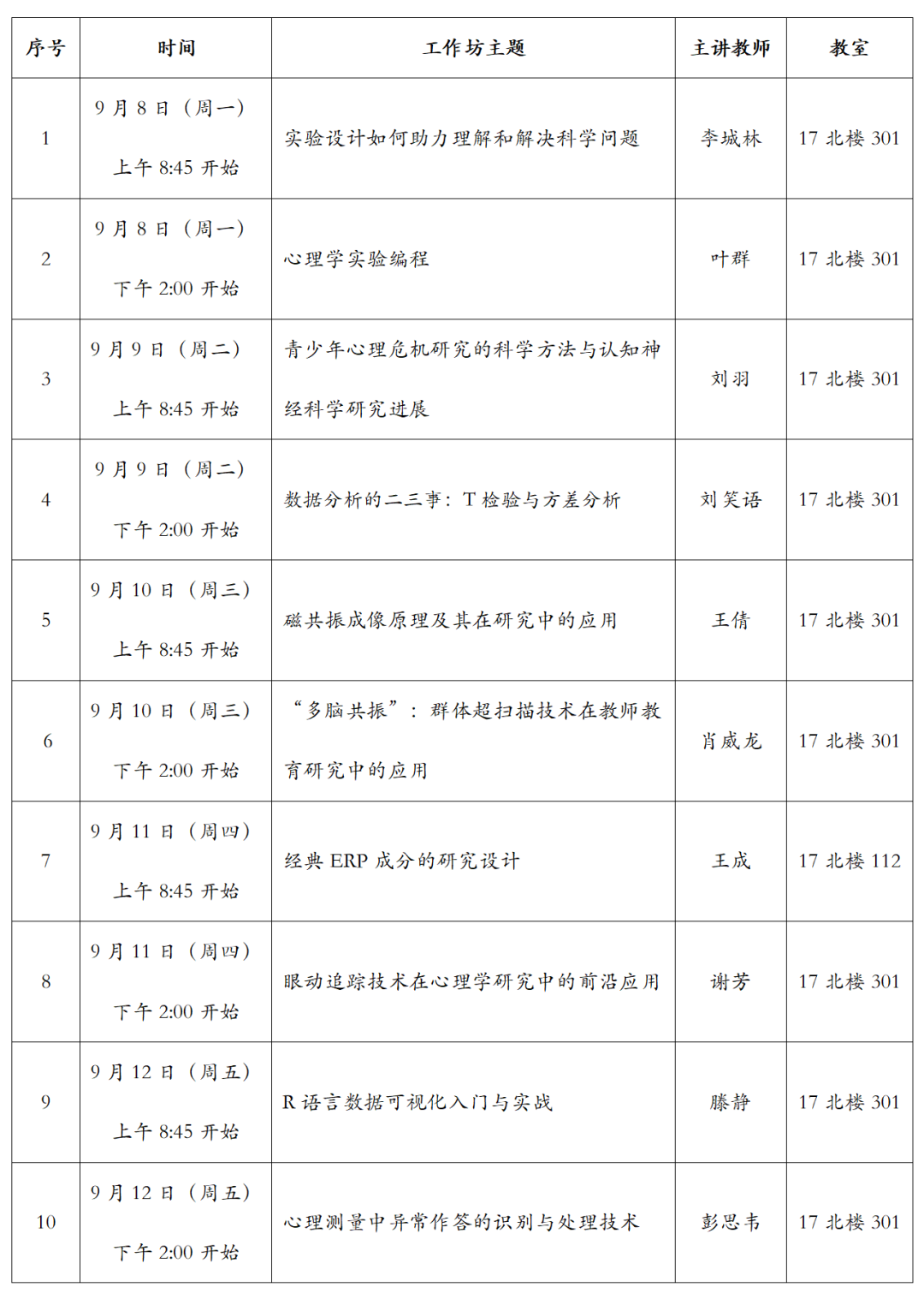 掌握心理学核心技能,是构筑坚实专业素养,提升科研创新能力,解决社会实际问题的重要抓手。为此,全讯600cc大白菜官网将于2025年9月8日至12日举办“心理学核心技能工作坊”。工作坊日程详情如下:
