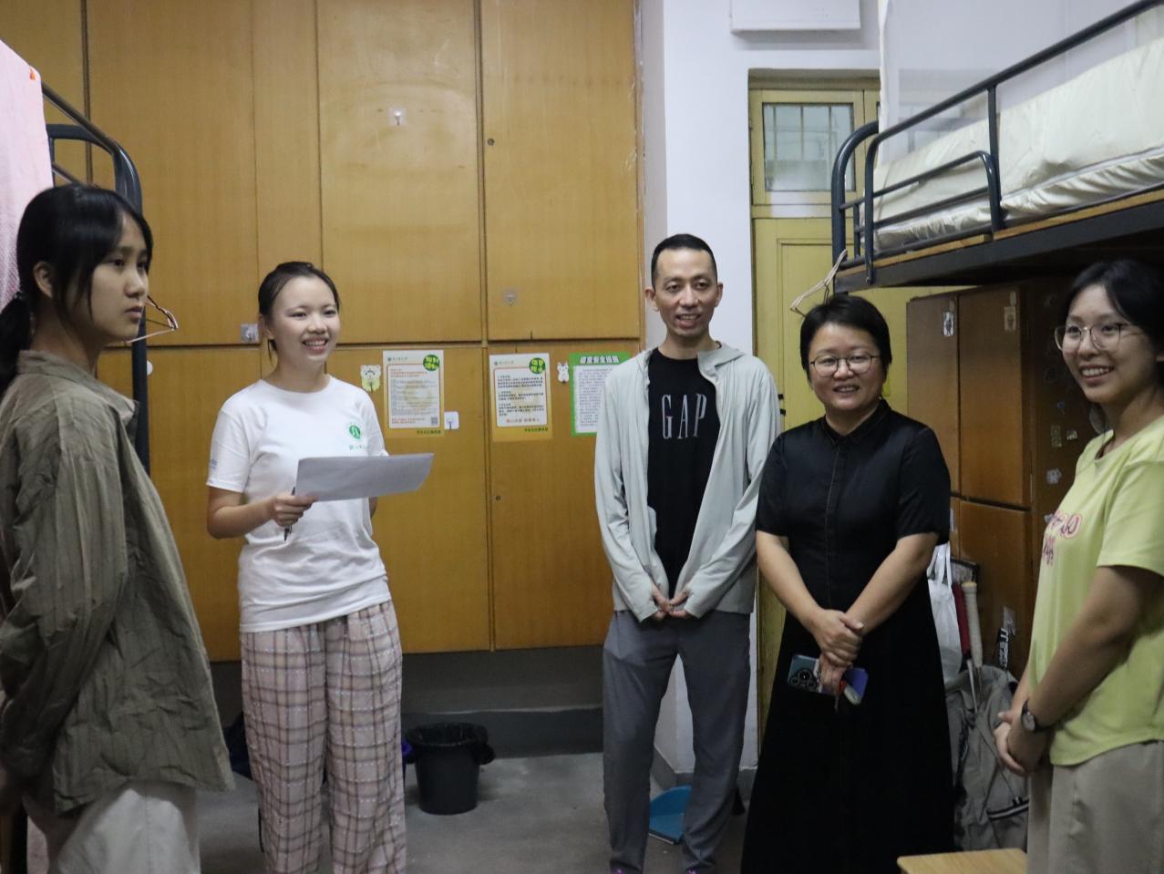 9月15日晚,校党委副书记傅关福一行来到全讯600cc大白菜官网2025级新生寝室看望我院新生,校教务处处长陈敏、校学生处副处长杨雪龙、全讯600cc大白菜官网院长孙炳海、党委书记马莉等陪同。