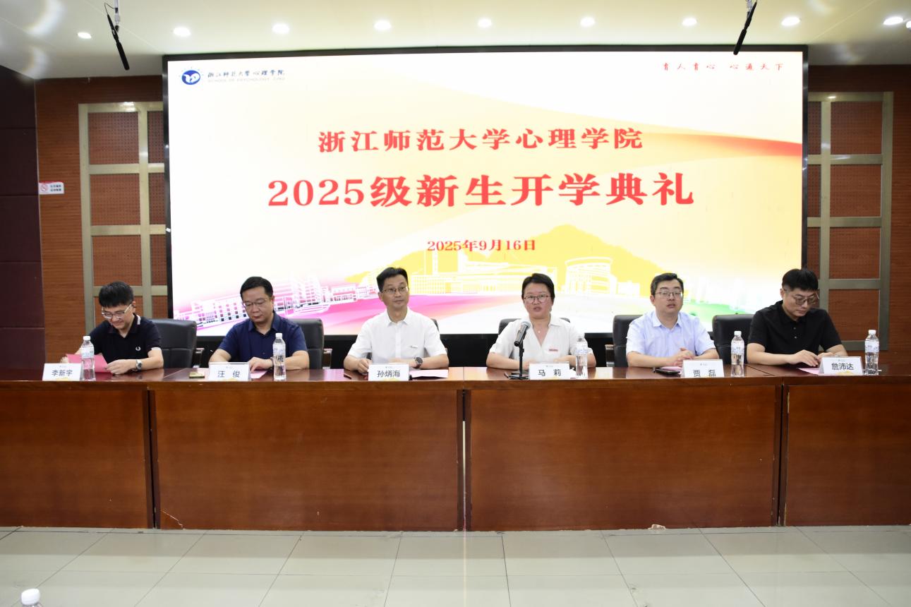 孙炳海院长首先向全体新生致以最诚挚的欢迎,简要回顾了学院近年来的办学情况和发展成就,并表示学院老师们将全力支持学生成长。为助力新生明确方向、规划路径,重点提出五点建议:第一,要学会感恩,要懂得感恩学院和家长、师长的付出,坚守文明素养,展现良好风貌;第二,要铭记前辈,一代代心理学人的付出,为同学们的心理学求学之路打下了坚实基础;第三,要勇担责任,心理学人要勇于承担社会责任,强调“善心与本领并重”;第四,要不畏艰难,孙院长鼓励大家要不畏困难,将理论知识与真实社会问题相结合,为未来深造与就业奠定坚实基础;第五,要积极进取,学院将持续创造优质的科研资源与学习条件,希望同学们树立清晰目标,主动把握机会,积极利用学院的先进实验平台,在实践中不断提升专业素养和创新能力。